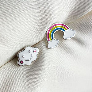 Gold Plated Colourful Star And Moon Stud Earrings