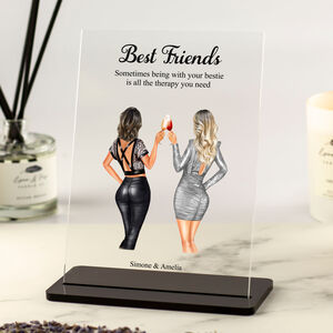 Personalised Glam Best Friends Illustration Plaque