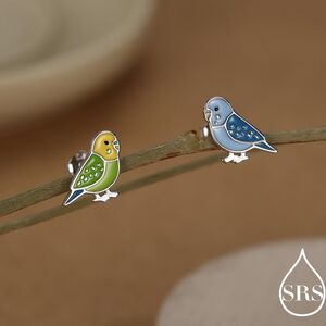 Sterling Silver Green Enamel Budgie Stud Earring