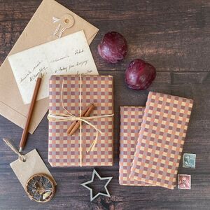 Three Sheets Of Peach Gingham Wrapping Paper