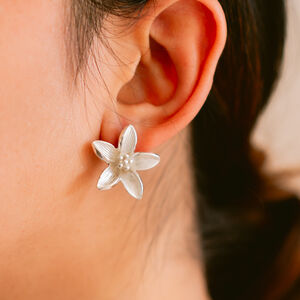 White Topaz Rose/Gold Plated Suspender Stud Earrings
