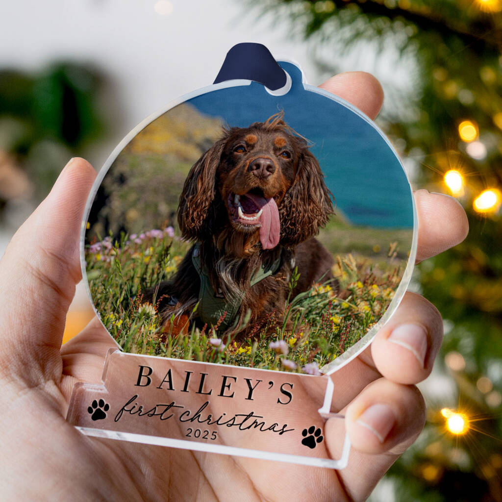 Perfect First Christmas ornament for your pet. This personalised bauble captures their milestone beautifully with custom photo keepsake memories.