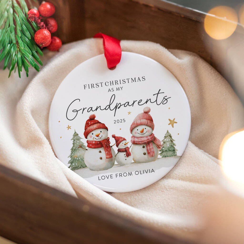 Perfect for Christmas 2025 celebrations and new grandparent milestones. This custom Christmas ornament transforms cherished First Christmas memories into a handcrafted keepsake that families treasure for generations. The premium ceramic gift creates a thoughtful present marking this special seasonal moment.