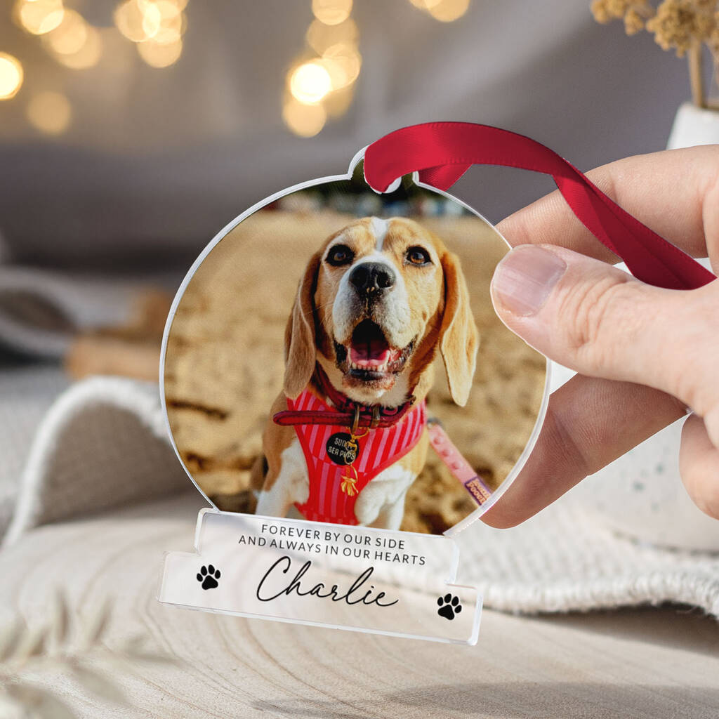 Perfect for Pet Memorial occasions and treasured memory keeping. This custom photo ornament transforms beloved pet photos into a handcrafted memorial that pet owners display with pride during Christmas and throughout the year as a thoughtful present.