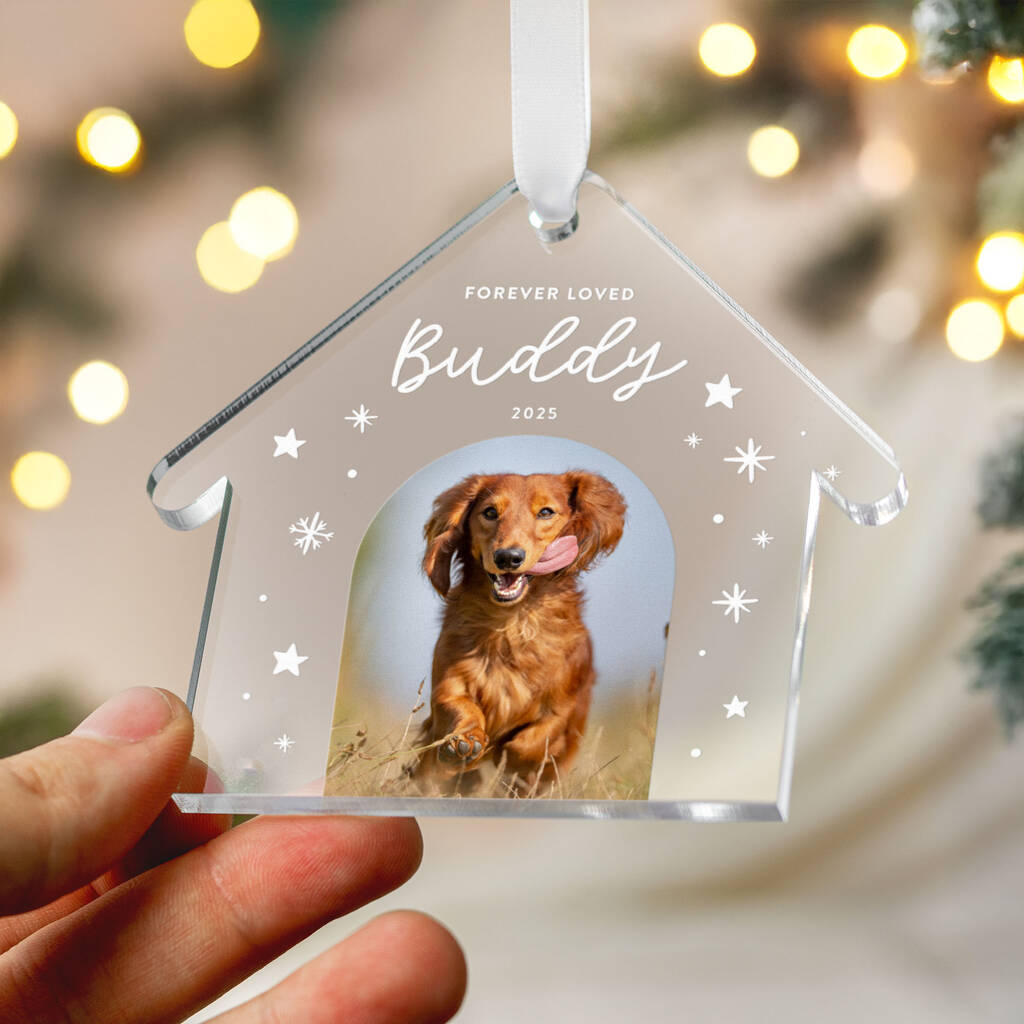 Perfect for Christmas 2025 celebrations and thoughtful remembrance occasions. This custom pet ornament transforms beloved memories into a beautiful hanging decoration that pet owners will treasure forever. The handcrafted memorial design creates a meaningful tribute displaying your pet's photo with elegant "Forever Loved" styling.