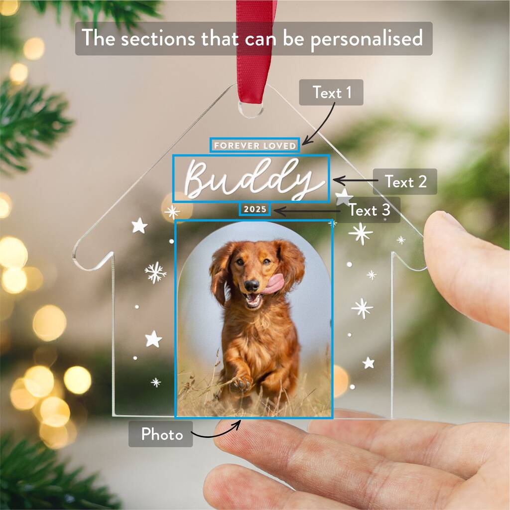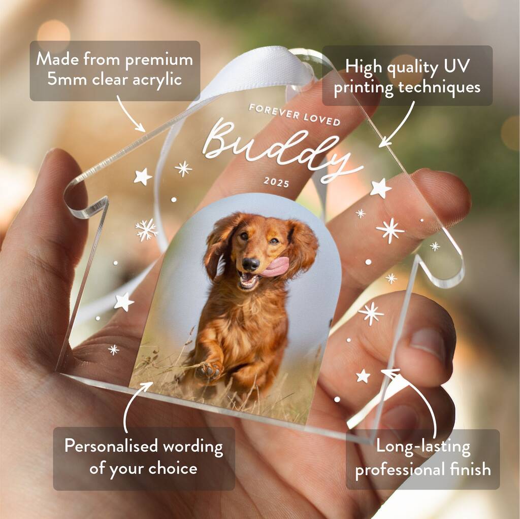 Perfect Pet Memorial ornament featuring your beloved pet's photo. This personalised photo bauble creates a Forever Loved keepsake tribute.
