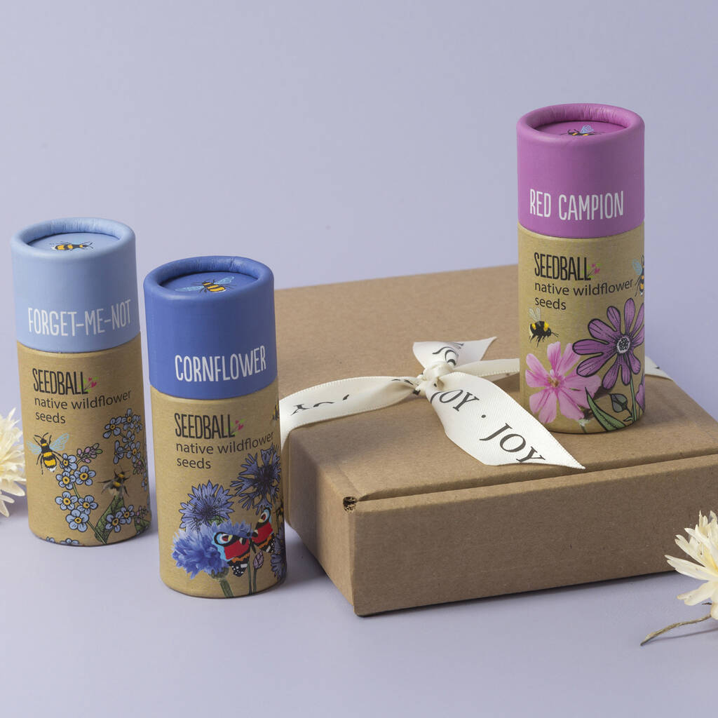 A set of three beautifully designed cardboard tubes, each filled with 20 seed balls. Choose from a selection of wildflower and herb seed varieties.