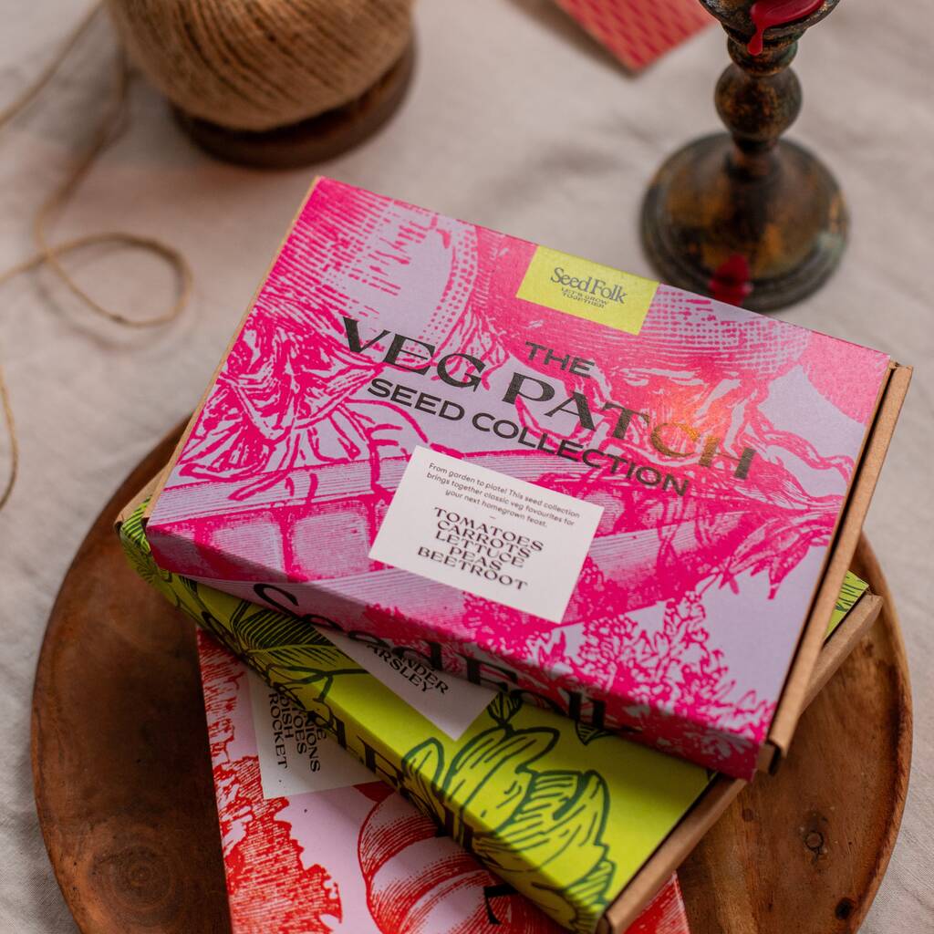 Inspire someone to grow this Christmas with The Veg Patch; a beautifully curated seed collection featuring: tomatoes, carrots, lettuce, peas and beetroot.