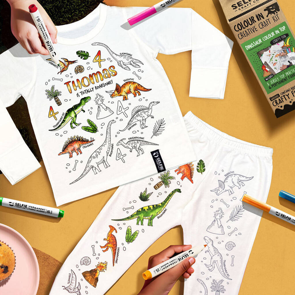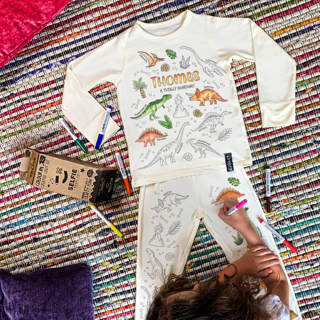 Personalised Dinosaur Colour In Pyjamas With Pens