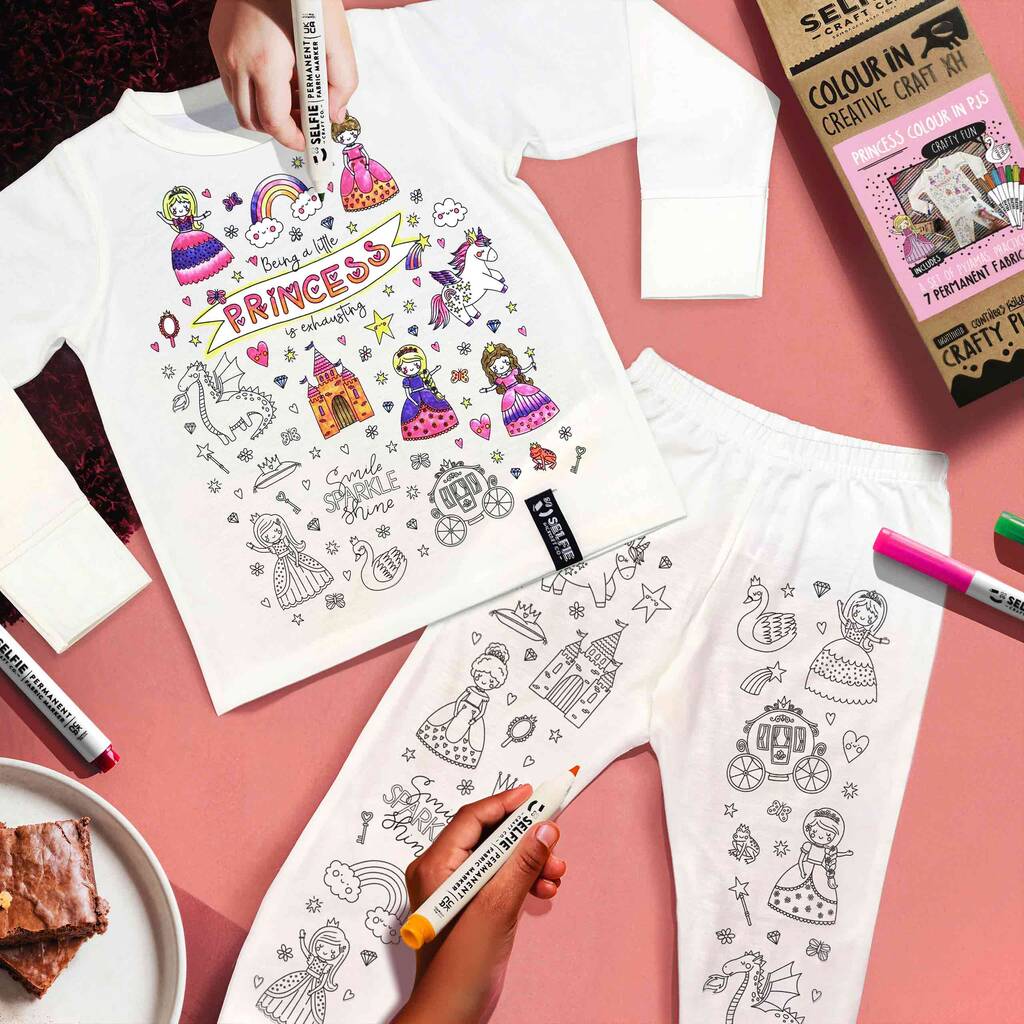 Personalised Princess Colour In Pyjamas With Pens