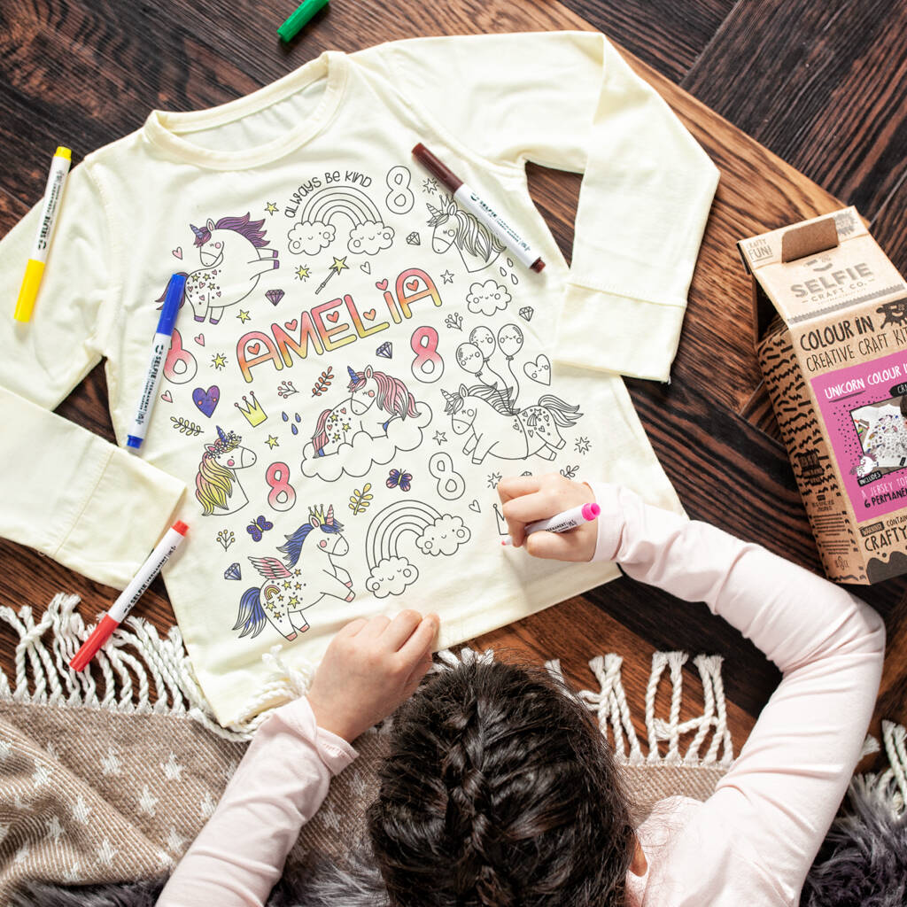 Personalised Unicorn Colour In T Shirt With Fabric Pens