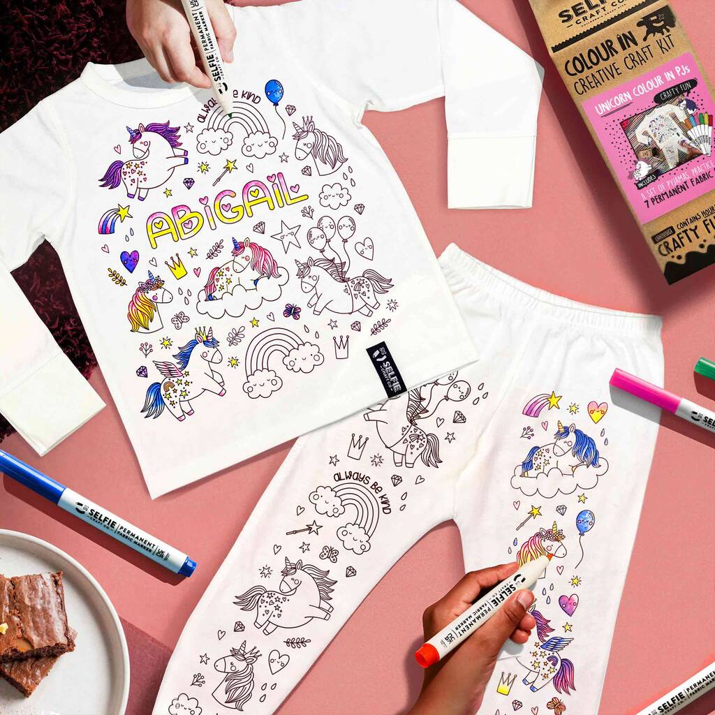 Personalised Unicorn Colour In Pyjamas With Pens