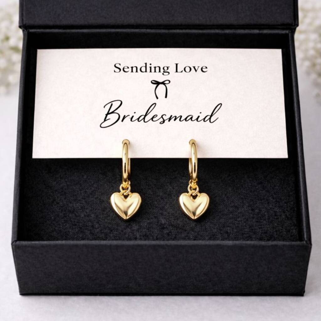 Bridesmaid Gold Heart Hoop Earrings Bridesmaid Thank You Gift, Wedding Jewellery, Bridesmaid Proposal Gift