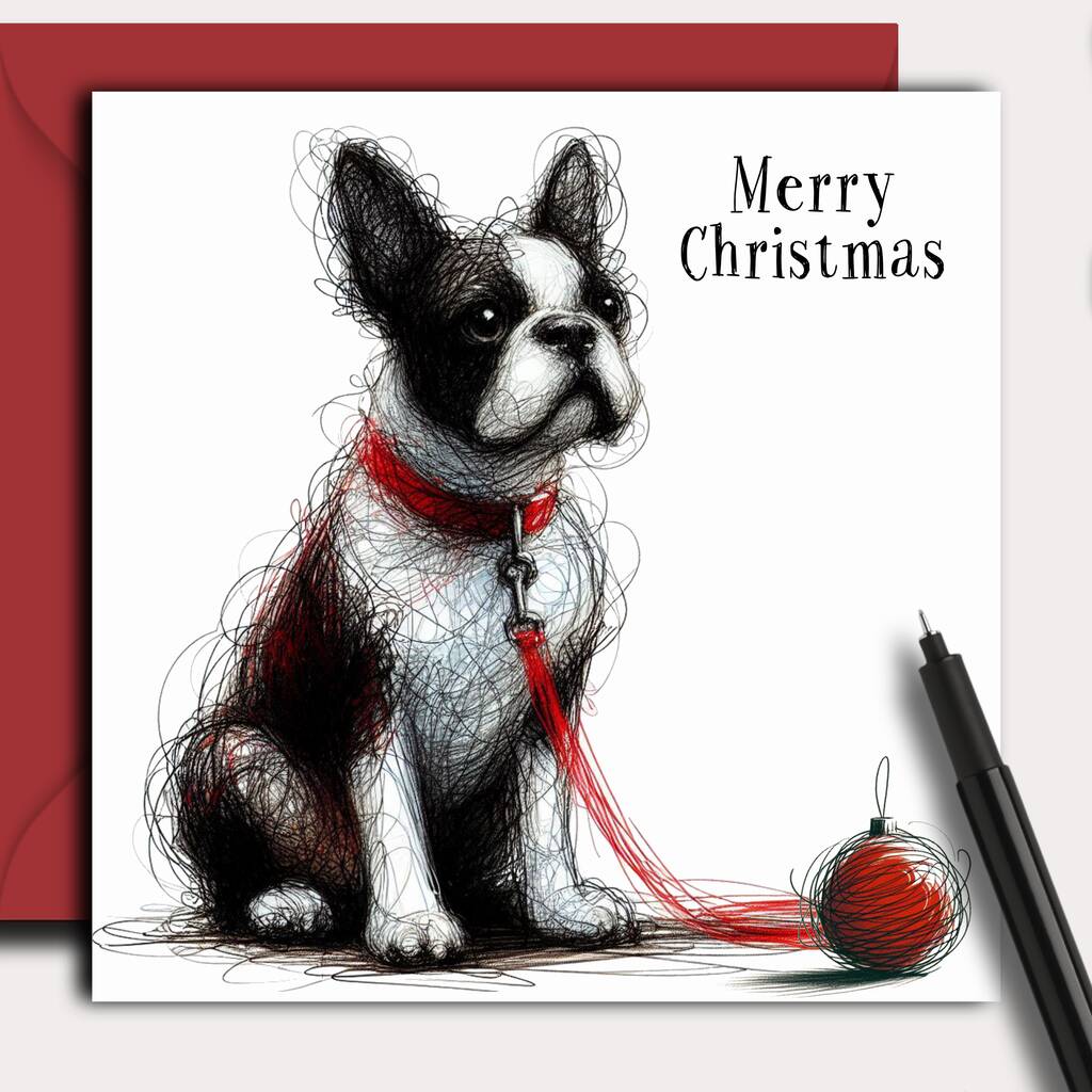 Boston Terrier Dog Christmas Card. Christmas Bauble