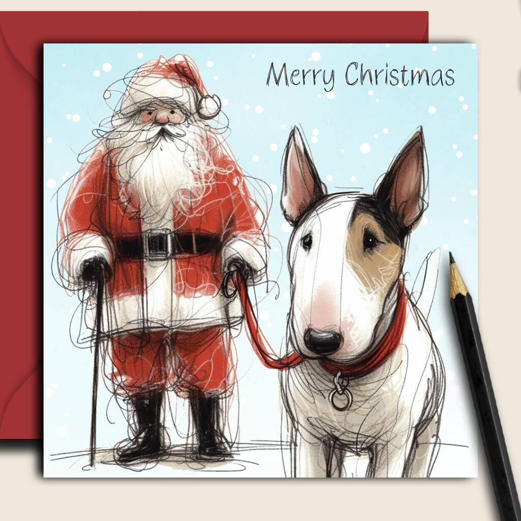 Bull Terrier Dog Christmas Card. The Christmas Walk