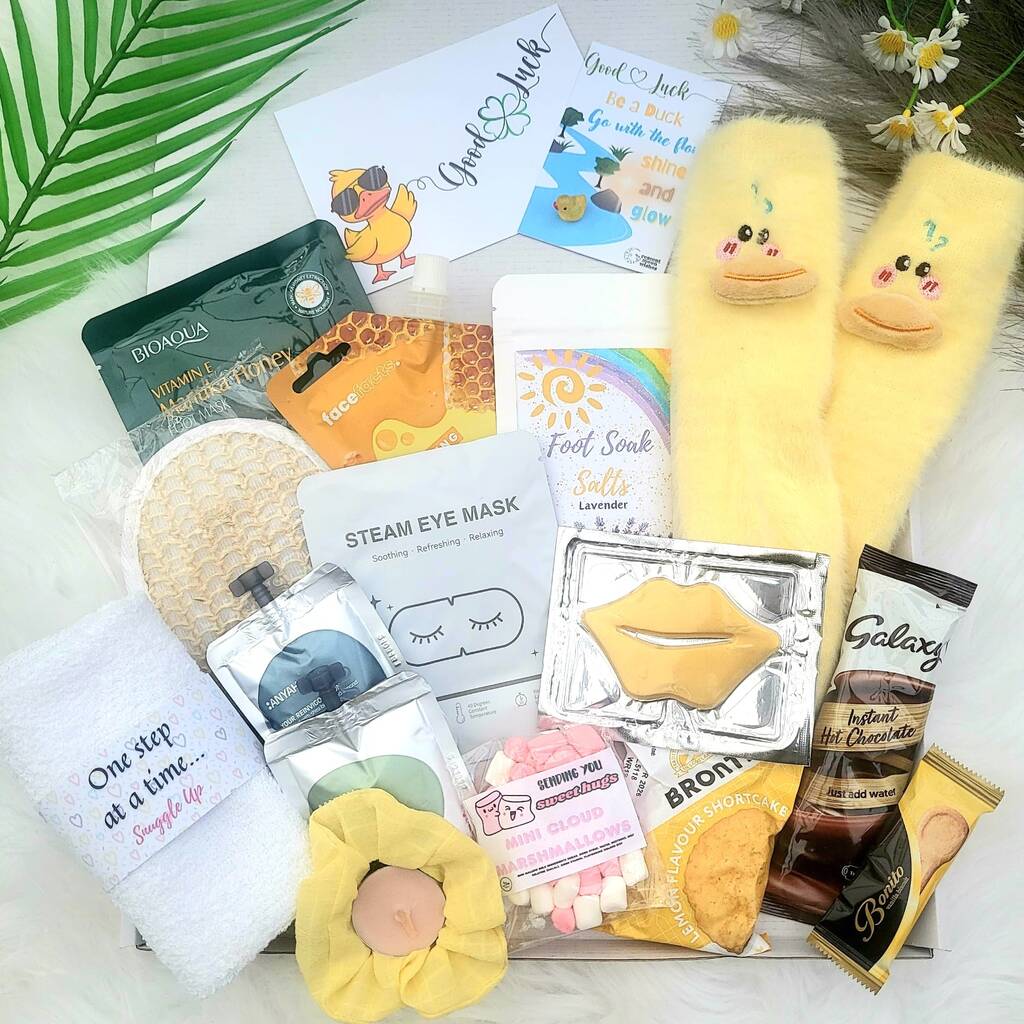Good Luck, New Job, New School, Pre-Interview, You Got This, Thinking of You, Hug in a Box, Exam SupportWish them all the luck in the world with this thoughtfully curated Good Luck Gift Box – the perfect send-off for new jobs, exams, fresh starts, or just because. Bursting with comforting treats, pampering self-care, and a sprinkle of charm, this box is designed to soothe, support, and bring a smile when it’s needed most.