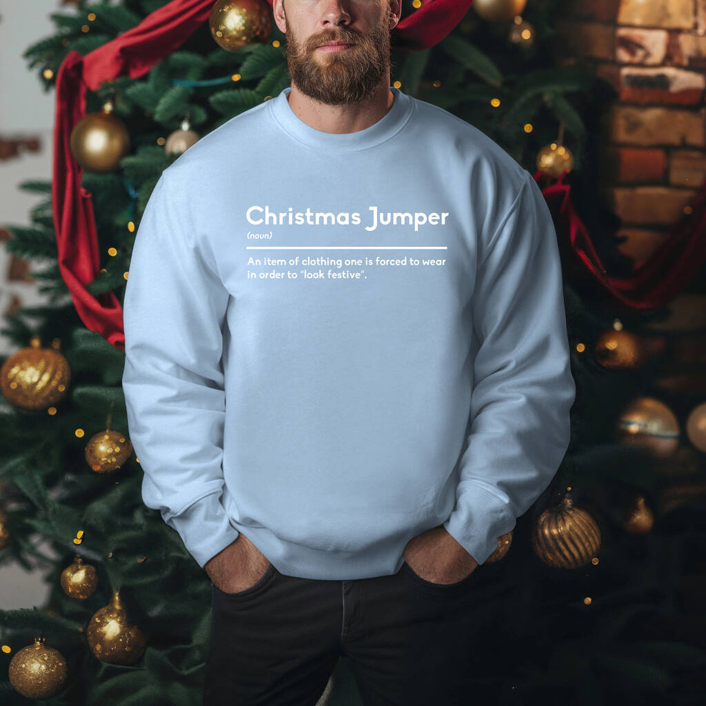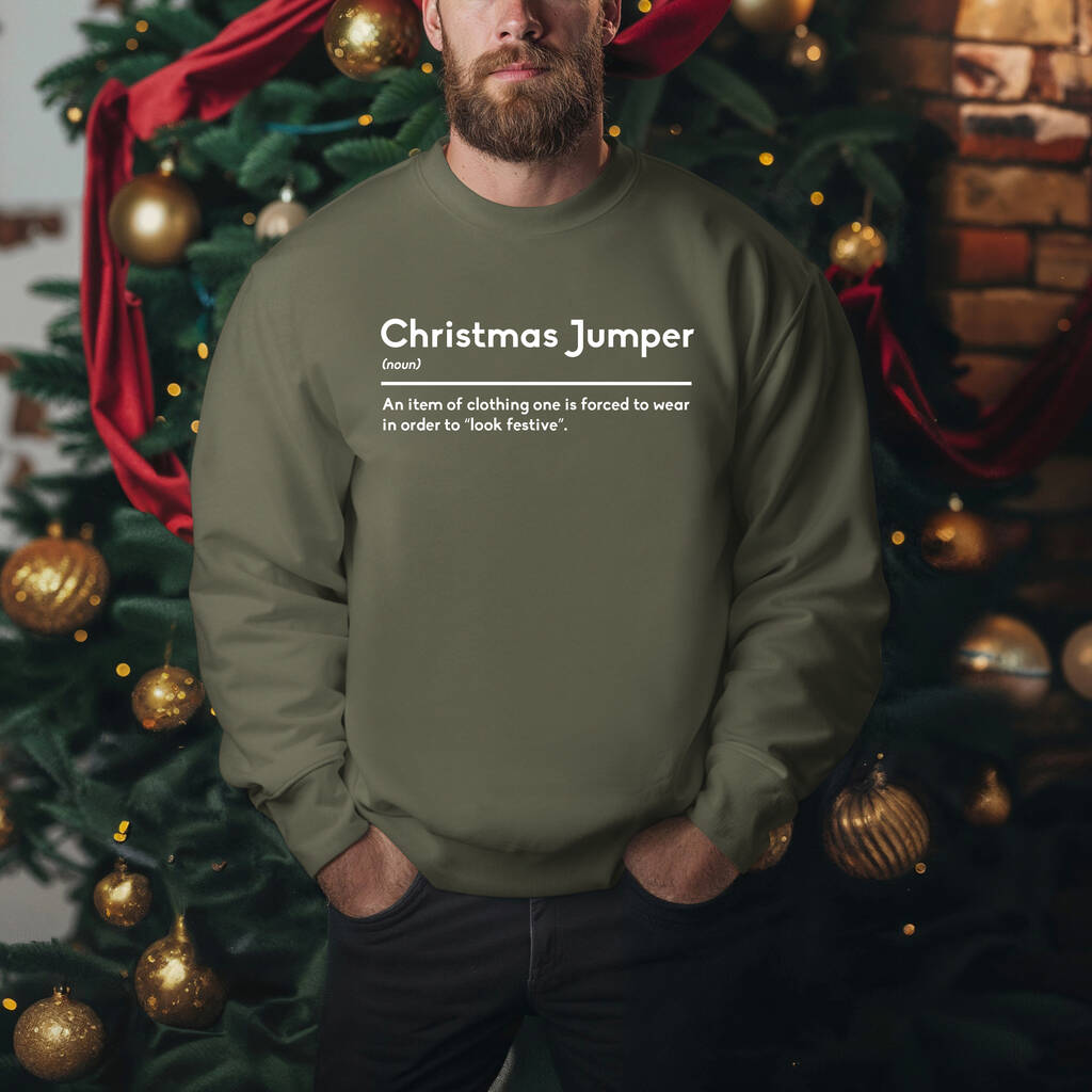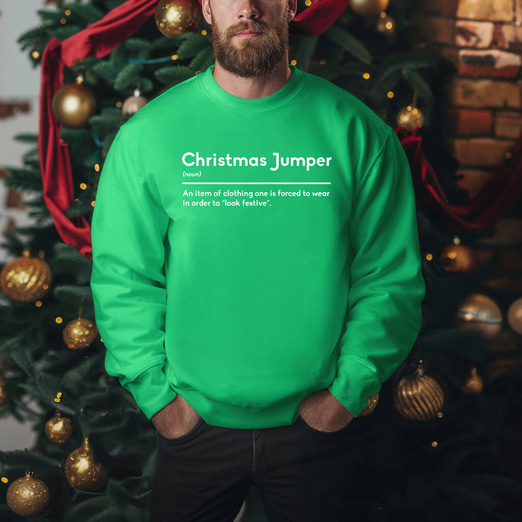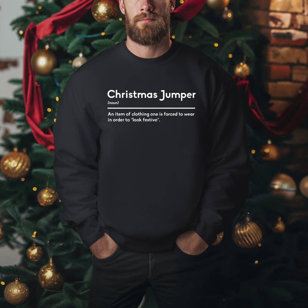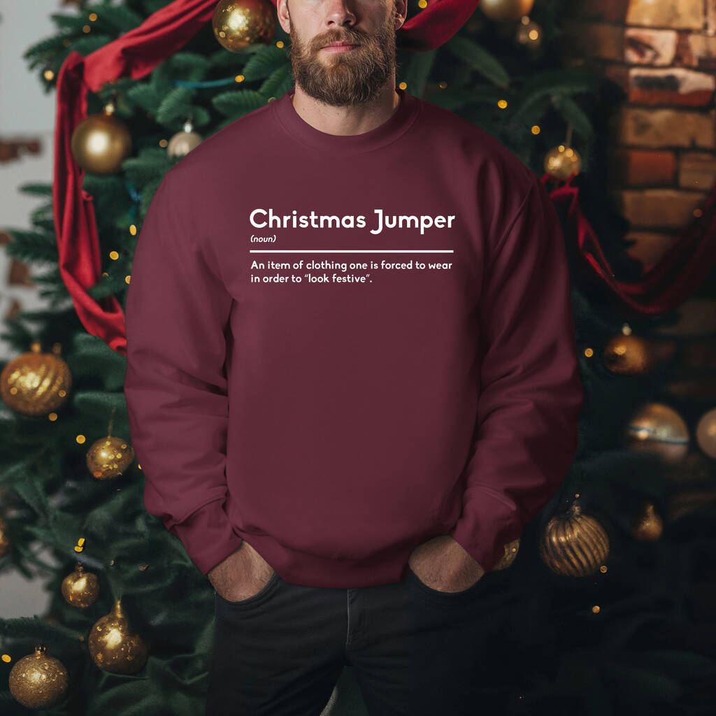 Christmas Jumper (noun) An item of clothing one is forced to wear in order to “look festive”.