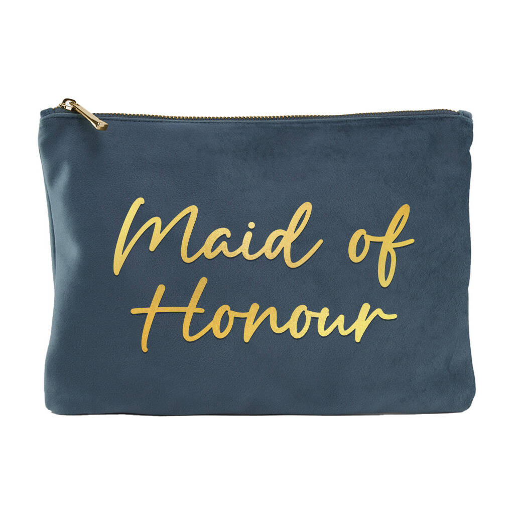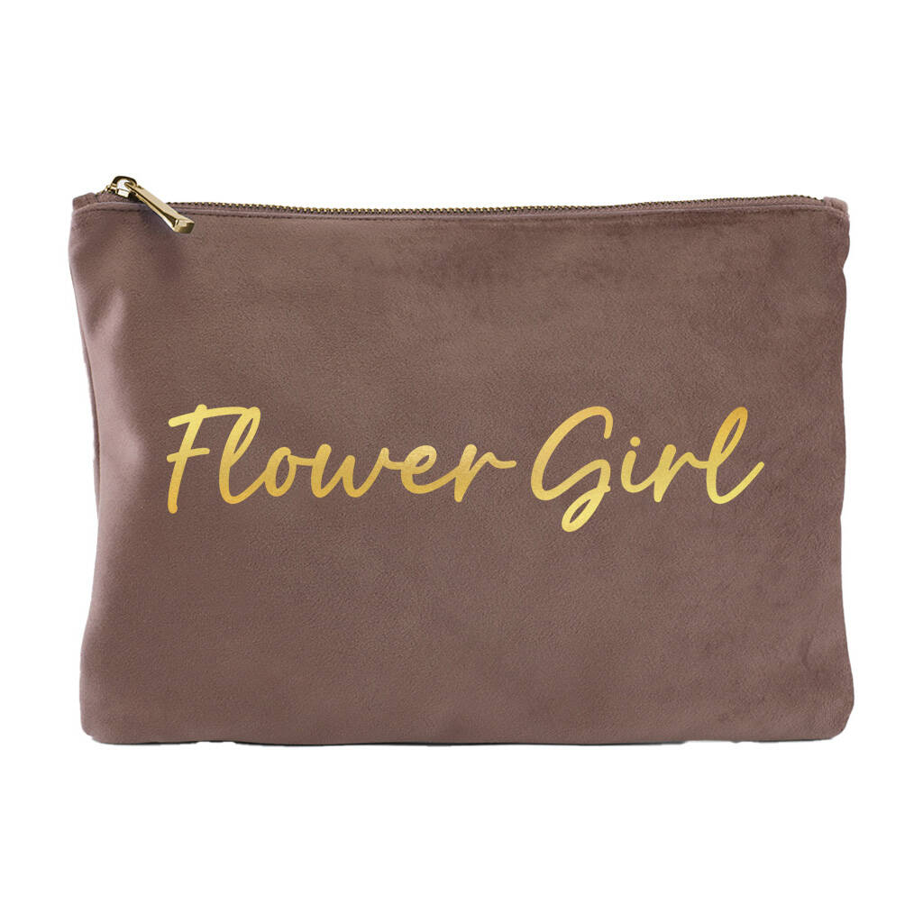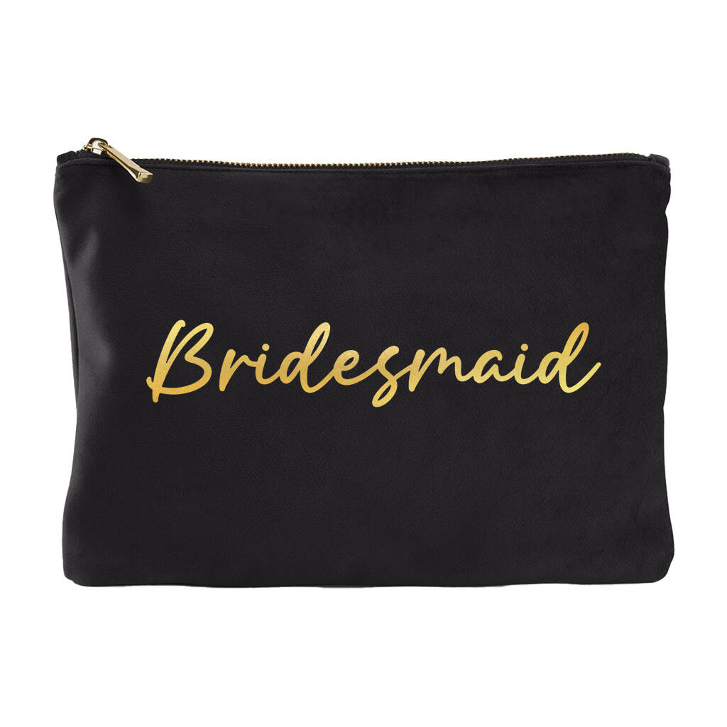 Each luxurious pouch is ideal for organising makeup, jewellery, or keepsakes. Available with chic gold script for the Bride, Bridesmaid, Maid of Honour, Flower Girl, Mother of the Bride, and Mother of the Groom.