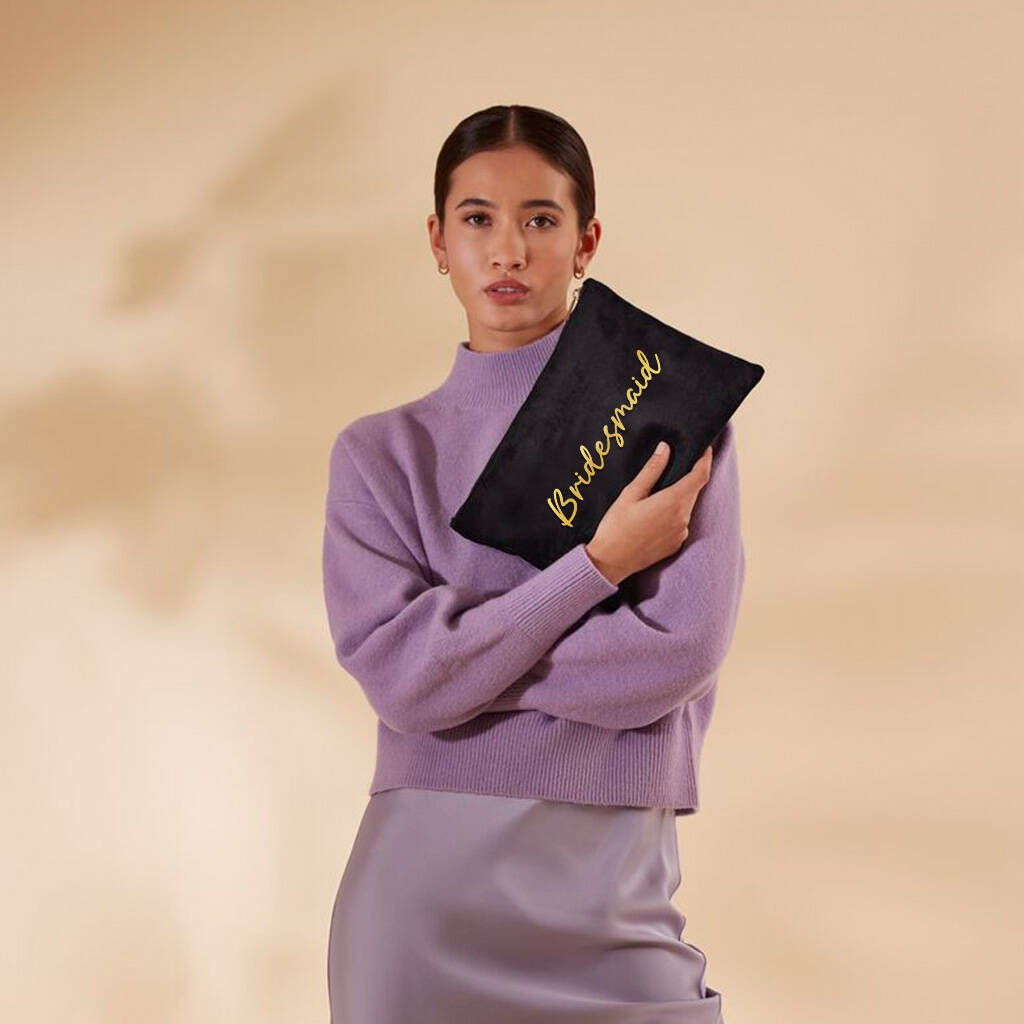 Elevate your bridal party with these gorgeous, soft-touch velvet makeup bags—the perfect elegant accessory.