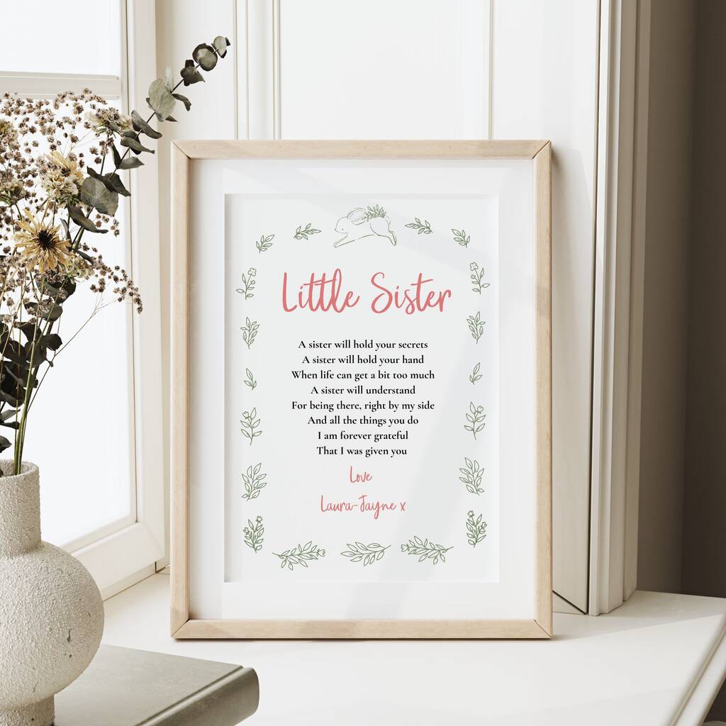 A heartfelt personalised poem print for a Sister, Big Sister or Little Sister – a perfect keepsake gift for birthdays, Christmas or a wedding day