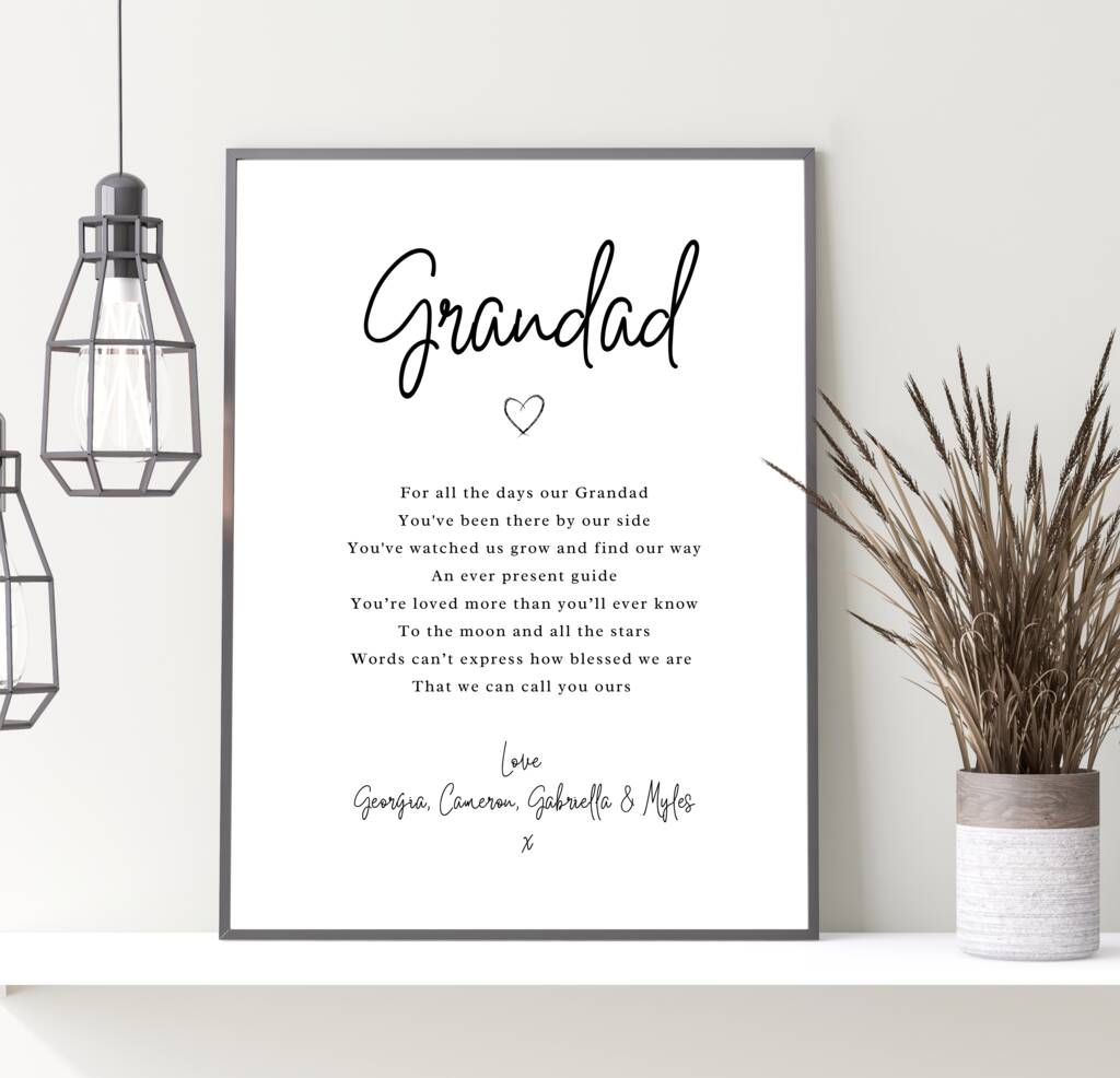 Treat your Grandad to something truly special this Christmas with a heartfelt personalised poem print – a sentimental keepsake gift he’ll always cherish and remember