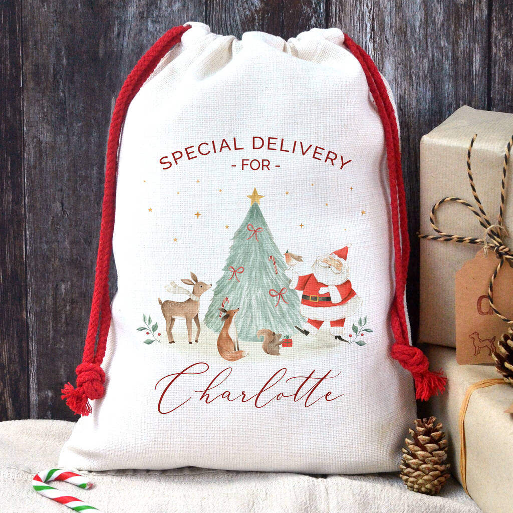Personalised Christmas Santa Sack Woodland Animals