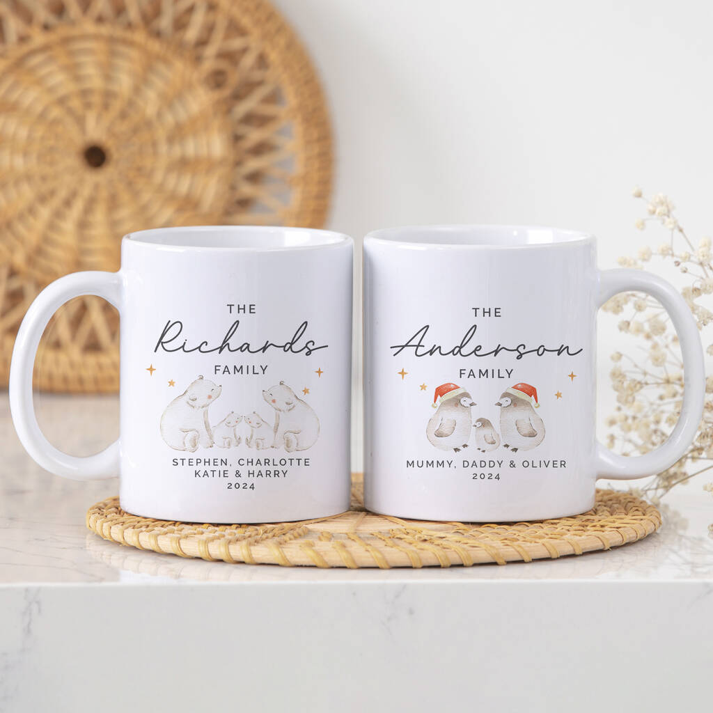 Personalised Family Name Mug Set – Polar Bear Or Penguin Family Design