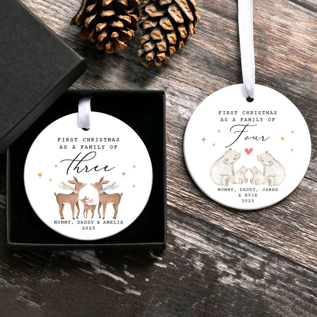 Personalised First Christmas As A Family Of Three Christmas Bauble