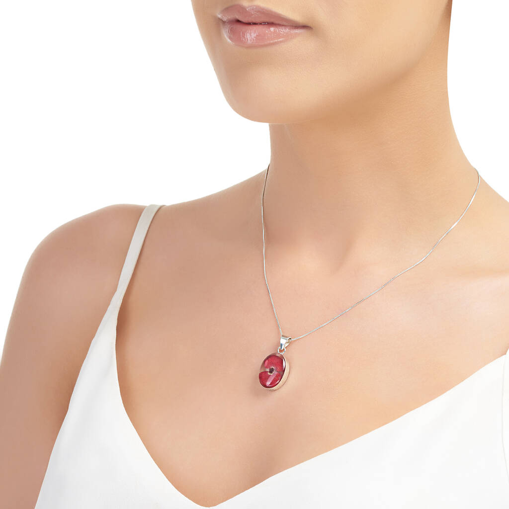 Poppy Necklace Sterling Silver Oval Pendant With A Real Flower