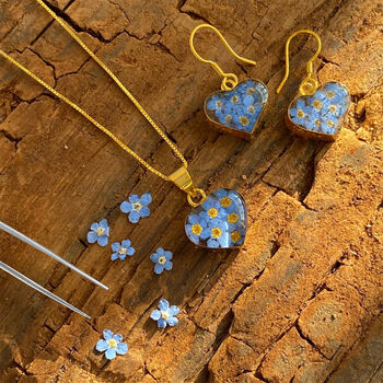 Silver Heart Pendant Necklace With Real Forget Me Nots. Mothers Day Gift