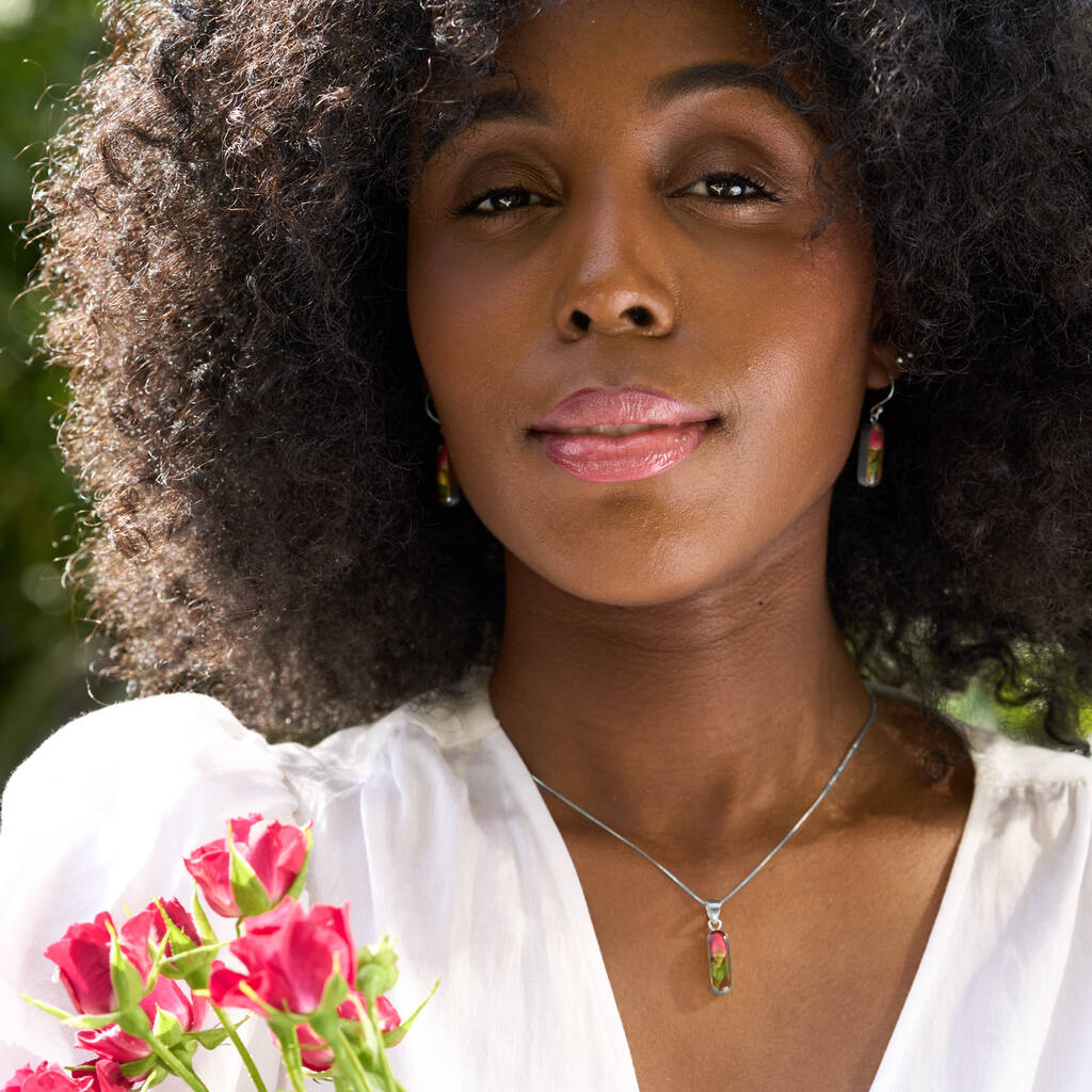 A romantic sterling silver jewellery set featuring real miniature rosebuds. Handmade and heartfelt, it’s the perfect Valentine’s Day gift for someone truly special.