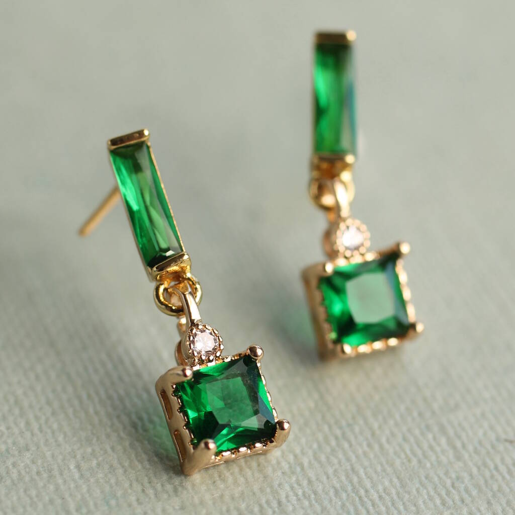 Art Deco Emerald Cube Earrings