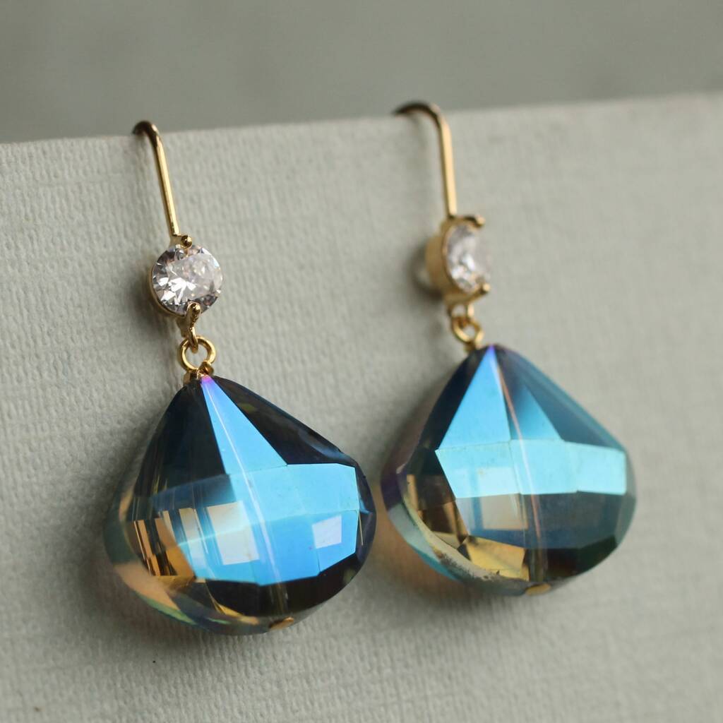 The glass jewels are a smoky, stormy blue colour and are faceted and cut to catch the light.