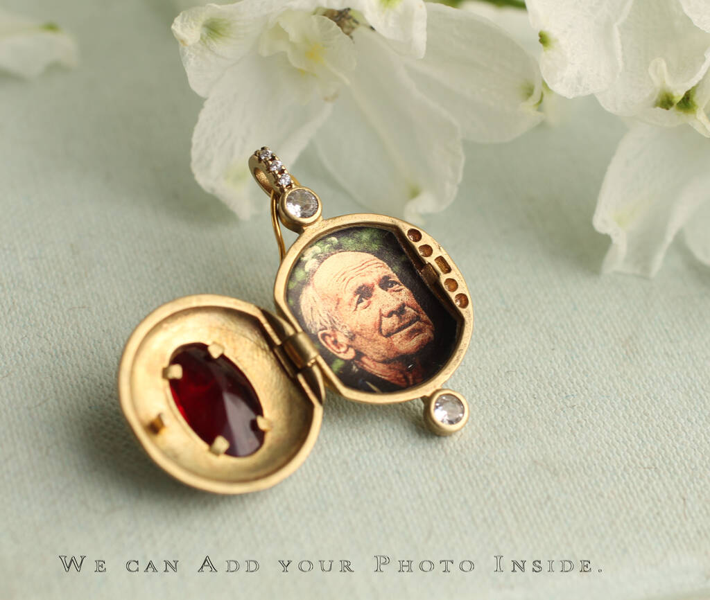 We can personalise this locket with the photograph of your choice, using a specially designed technique. You can also have an inscription engraved on the back of your locket, in a choice of beautiful fonts.