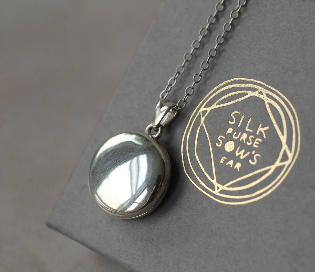 The locket necklace measures 15mm (just over half an inch) in diameter and has a beautiful weight and quality. It is a beautifully made, high quality piece of jewellery that would be ideal for layering with other necklaces, or worn by itself.