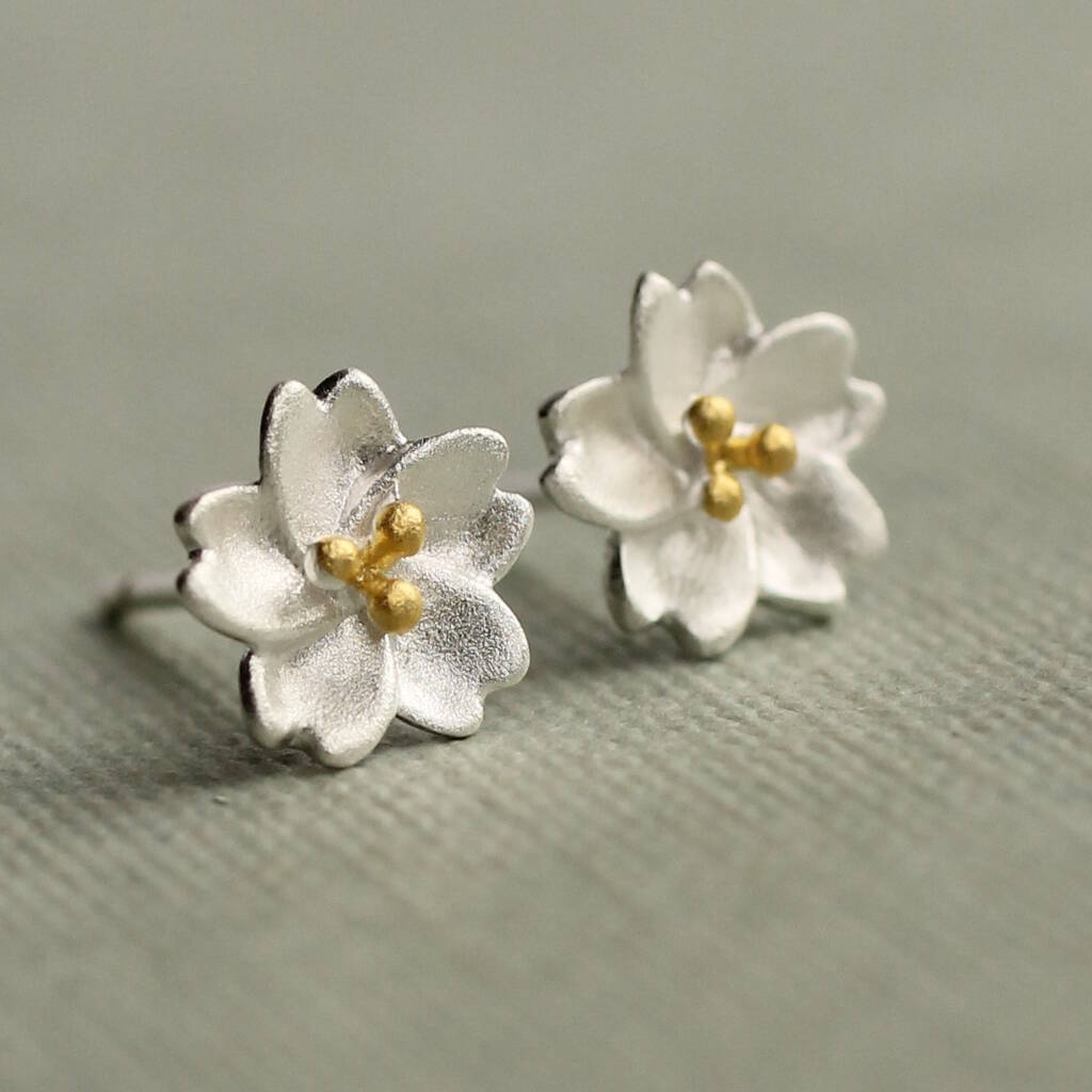 These sweet and charming flower earrings are made from sterling silver, with a tiny gold plated centre.