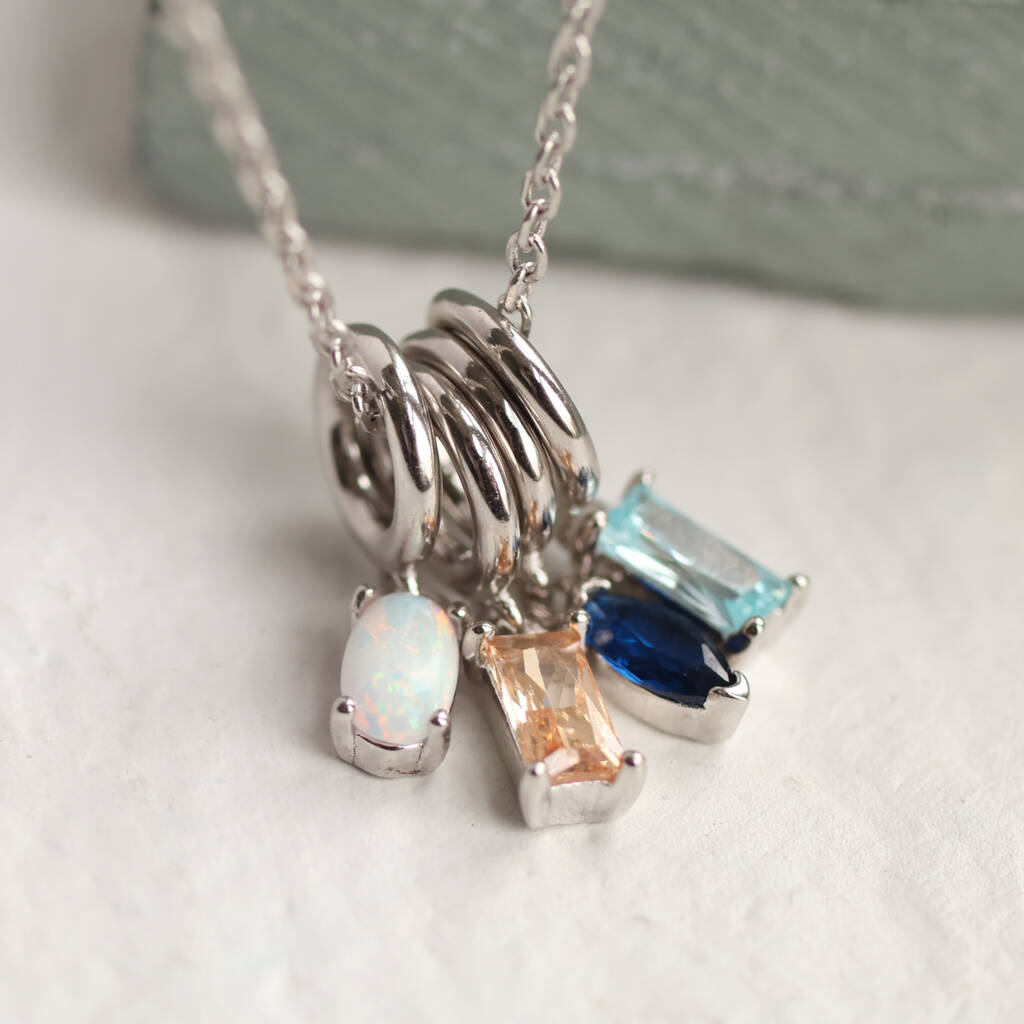 Sterling Silver Birthstone Charm Necklace, 1 of 10