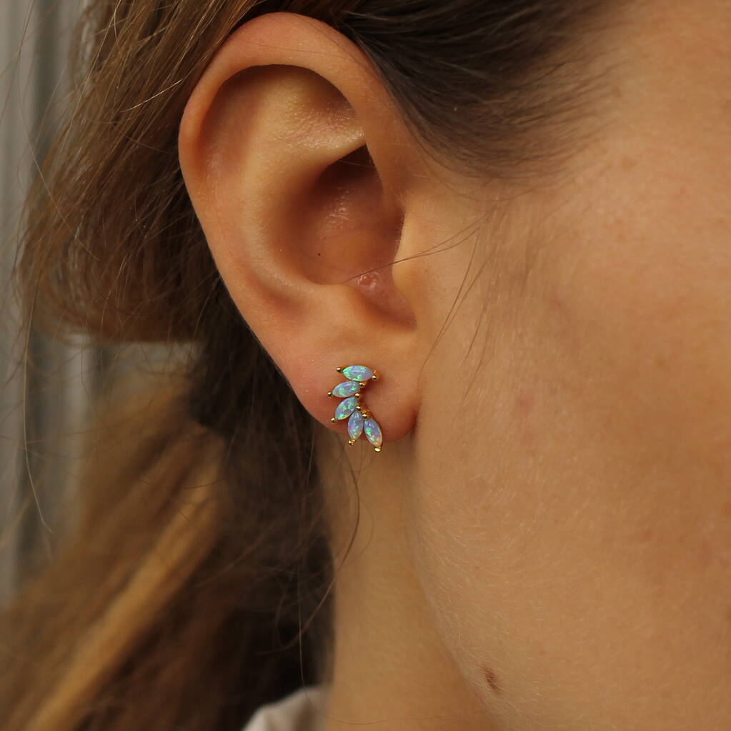 Beautifully delicate, opal earrings, which glow bright when the light catches them.