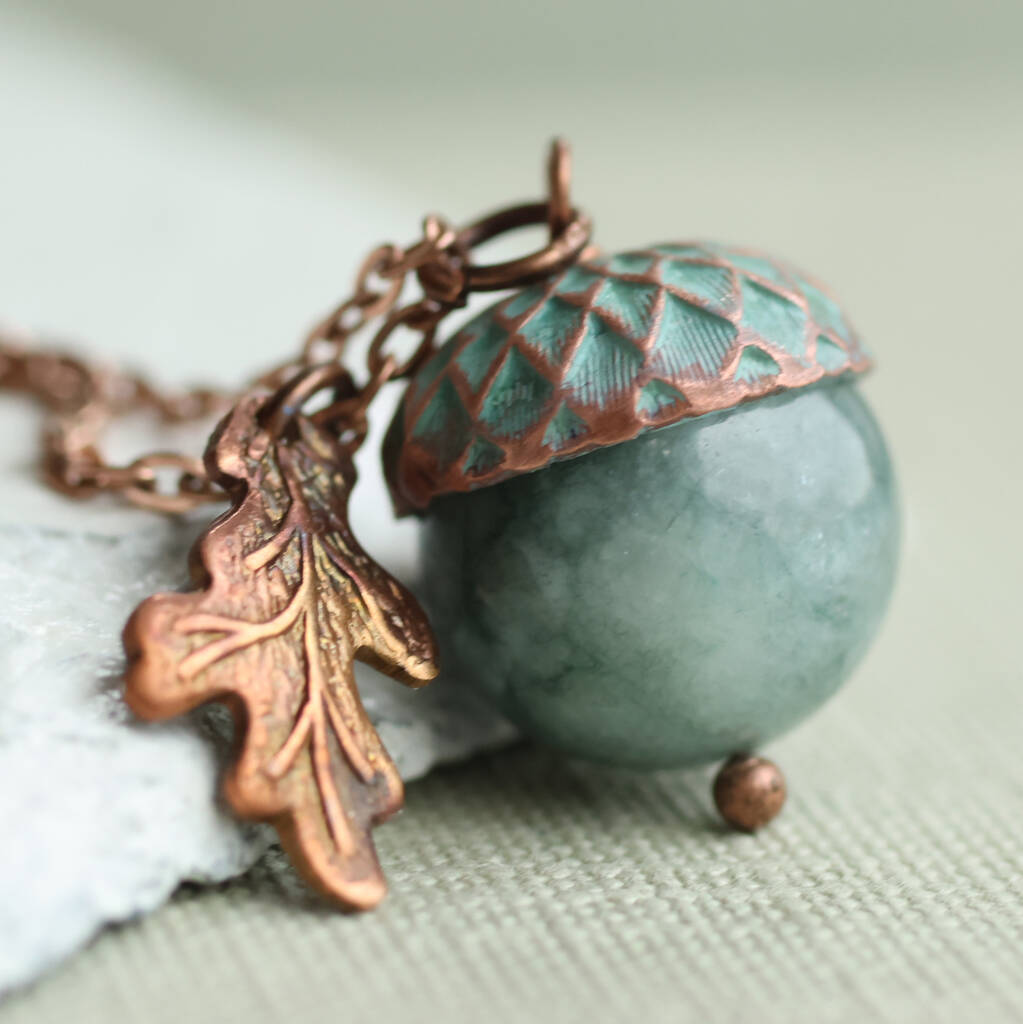 Storm Blue Jade Acorn Necklace