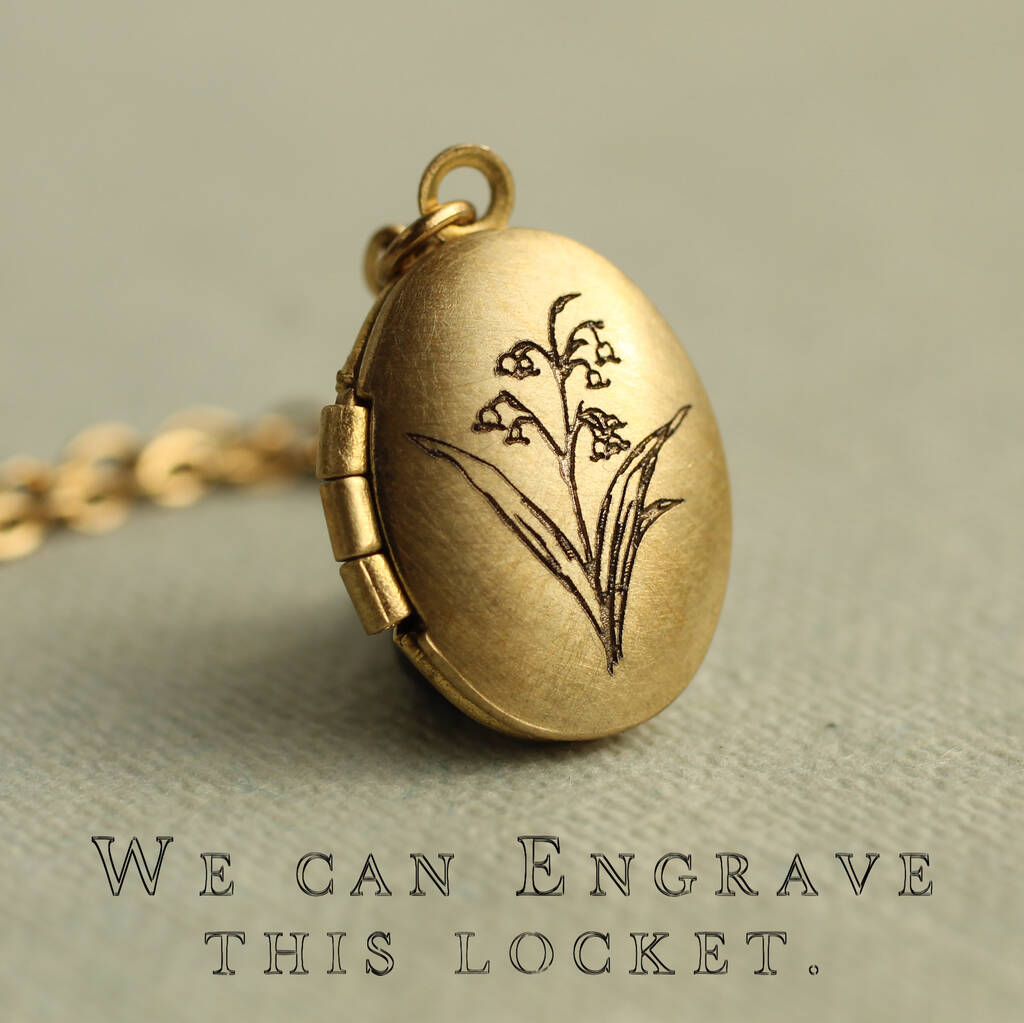 This tiny gold oval locket necklace can be personalized with photos inside, and with a charming engraving on the front.