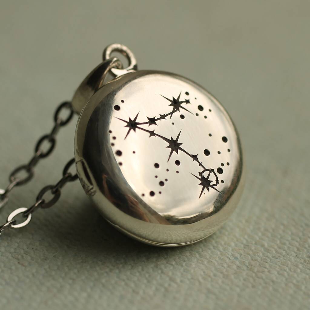 This tiny zodiac locket is made from solid sterling silver which has been engraved with the constellation star sign of your choice