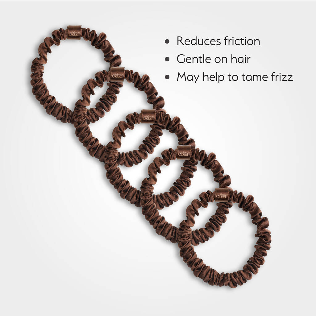 Silver Cloud Brown Satin Skinny Scrunchies Five Pack
