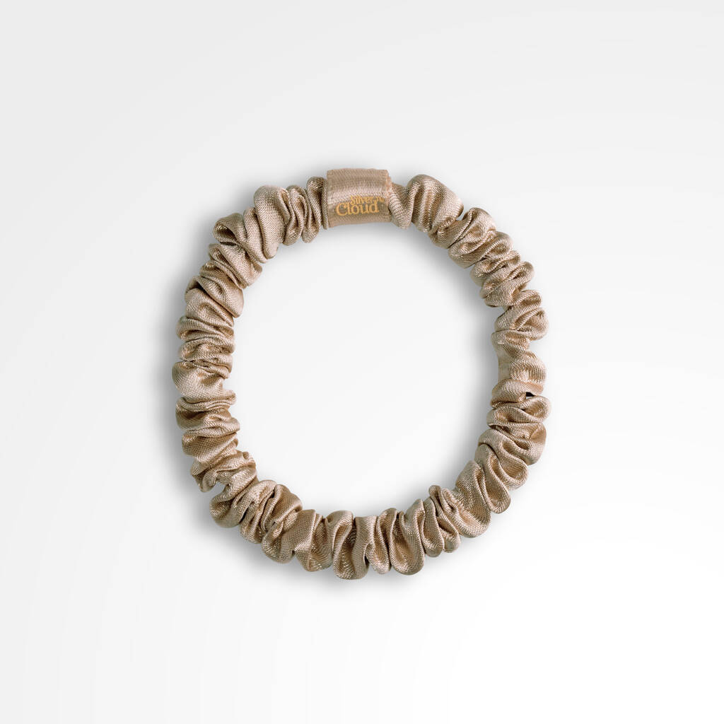 Silver Cloud Caramel Satin Skinny Scrunchies Five Pack