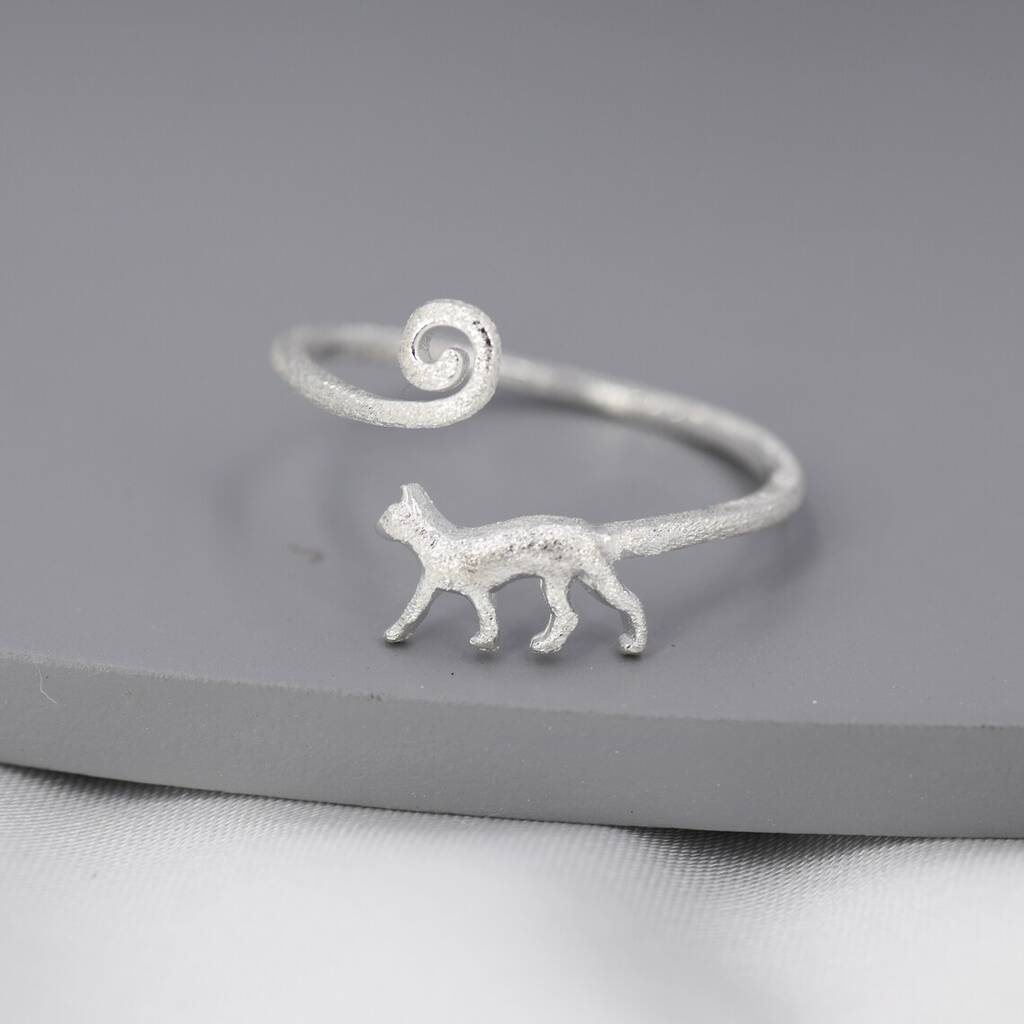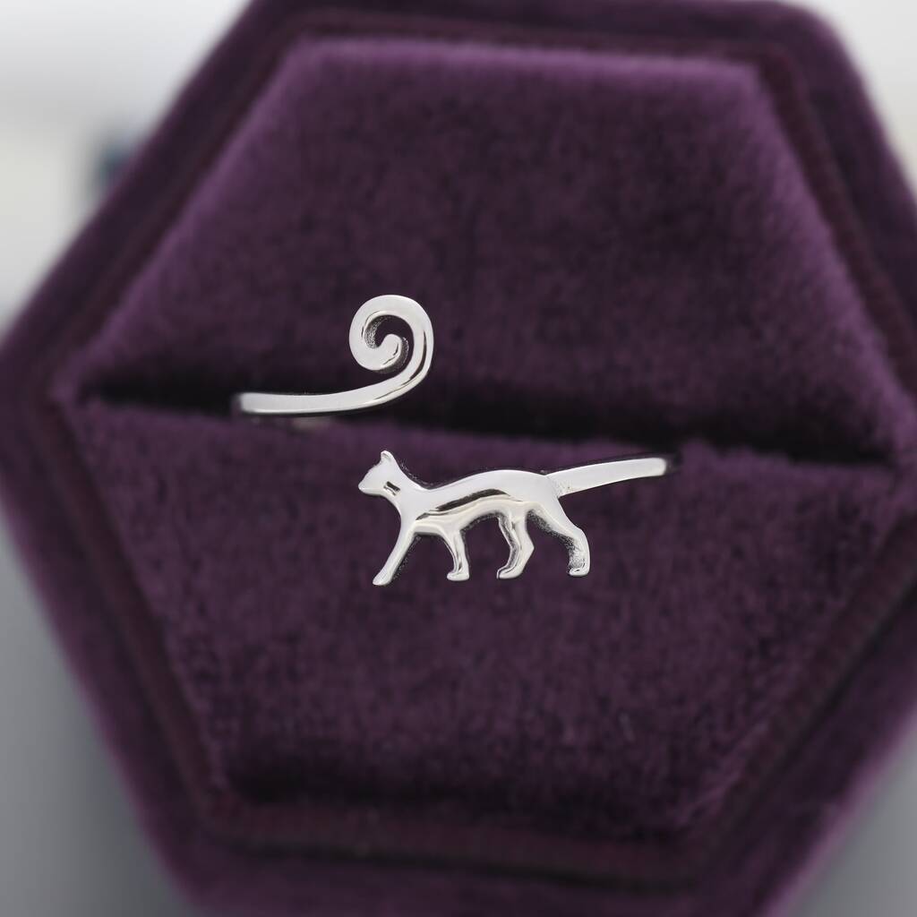 Adorable handcrafted adjustable cat ring. Celebrate the grace of feline companions. Perfect for adding a touch of pet love or gifting to cat enthusiasts.