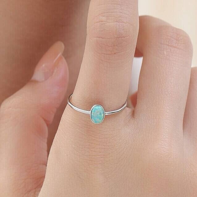 Aqua Green Opal Oval Ring In Sterling Silver