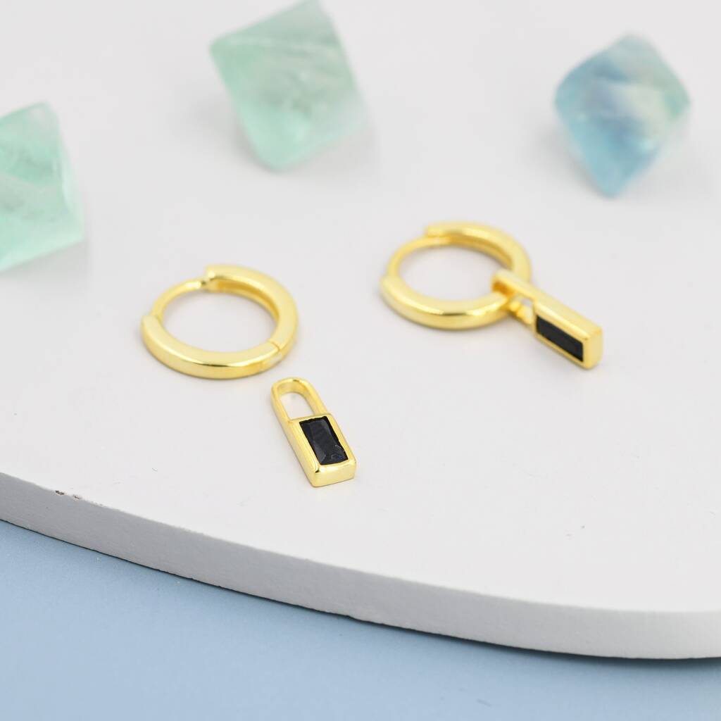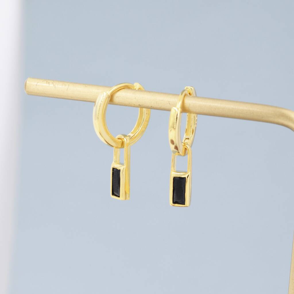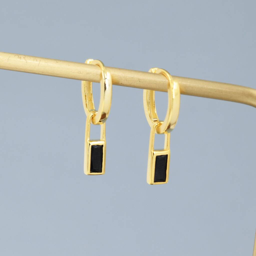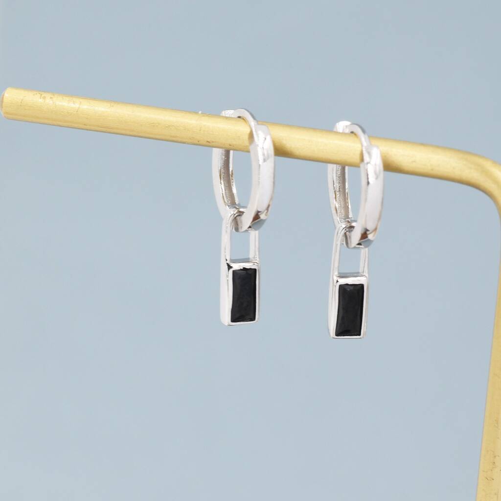 Sterling Silver Black Baguette Cut Cz Huggie Hoop Earrings