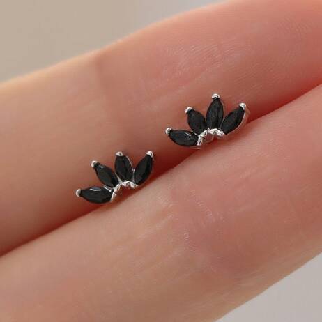 Sterling Silver Black Cz Lotus Flower Screw Back Earrings
