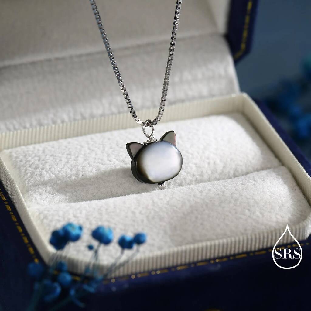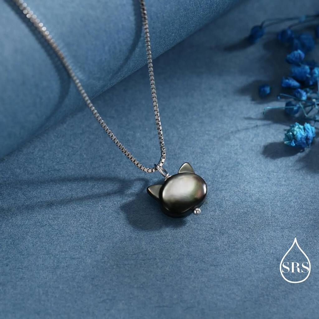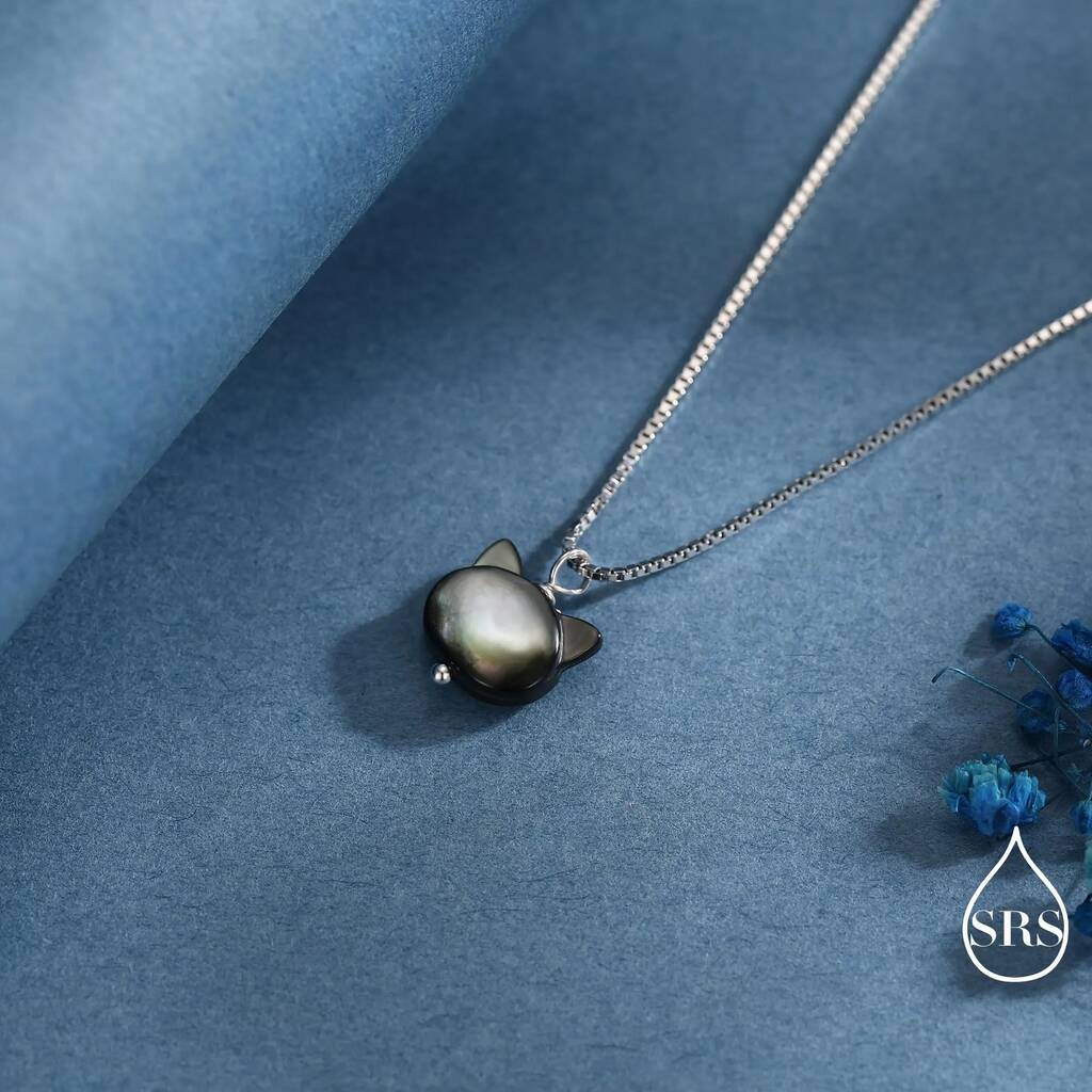 Charming cat-shape pearl pendant necklace in sterling-silver. Celebrate feline-elegance with a touch of unique-beauty. Perfect for daily wear or gifting to cat lovers with style.