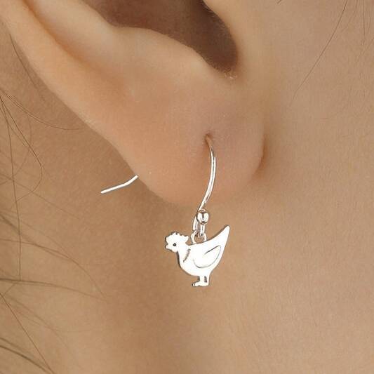 Chicken Drop Hook Earrings In Sterling Silver
