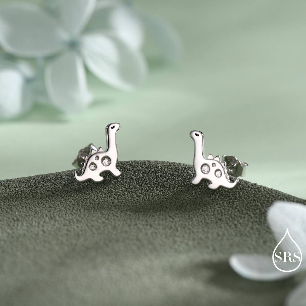 Charming brachiosaurus stud earrings crafted in sterling silver. Embrace playful charm with these adorable accessories, perfect for adding a whimsical touch to your ensemble.